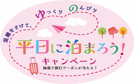 本キャンペーンは、平日旅行(平日に宿泊)に特化したキャンペーンとして、平日に宿泊したお客様に抽選で次回のご旅行に使えるクーポンが当たるという内容です。業界全体で一体となり、このキャンペーンを展開していくことで、混雑緩和や需要の平準化はもとより、国を挙げての休暇取得促進(「ポジティブ・オフ」「休み方改革」)や自治体での各種取組(「ラーケーション」等)と連動した休暇取得促進のムーブメントを醸成し、関係する皆様と連携しながら課題解決と旅行需要の拡大に努めてまいります。