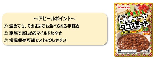 2. 2025年秋に「おうちでトルティーヤ」のトルティーヤ生地商品を販売した後に、具材の準備の時間を短縮することでより身近なメニューになるのではないかという思いで「おうちでトルティーヤ タコスミート」を今回発売いたします。