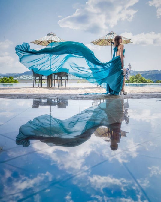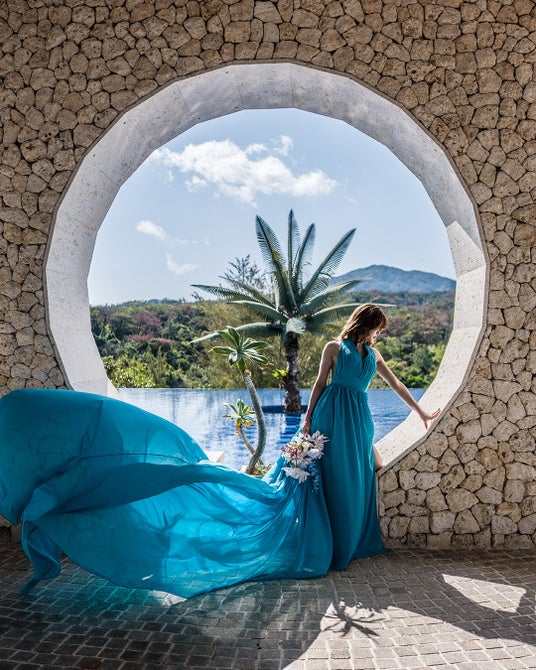 【オリエンタルヒルズ沖縄】極上の滞在と絶景に映えるフライングドレスの「フォトウエディングプラン」販売開始