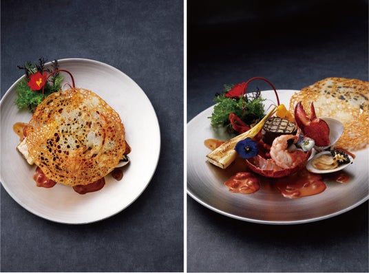 第1回目となる4月30日(木)のメインディッシュは「サステナブルロブスターと糸島・加布里漁港の天然ハマグリの白ワイン蒸し 唐津産雲丹のソース 北九州・合馬のたけのこ添え」(写真右)。5月以降のメインディッシュは公式ホームページにて順次発表いたしますので、どうぞご期待ください!