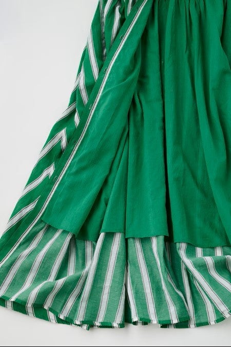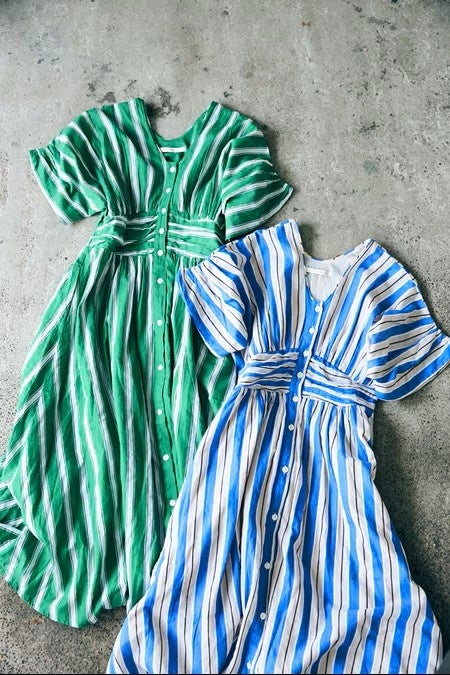 種類豊富なドレスが揃う「ヌキテパ」の中でも人気の高い「グリーンストライプ柄」に加え、別柄として「ブルーストライプ柄」もご用意。