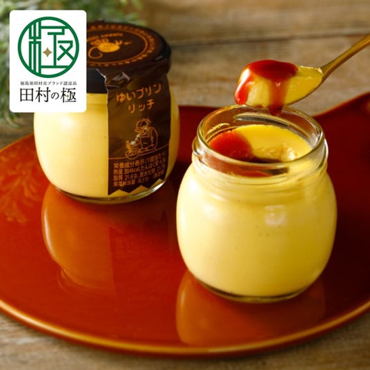ゆいプリンリッチ/みやこじスイーツゆい都路産の卵の卵黄と生クリームをたっぷり使った、滑らかな食感の人気ナンバーワン商品です。