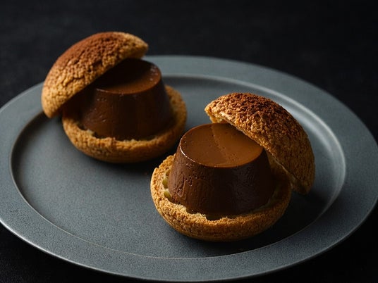 カカオ収穫から60日以内に仕上げた「60日カカオ」を使用したショコラプリンを、小麦不使用のグルテンフリーシュー生地に合わせた限定商品。