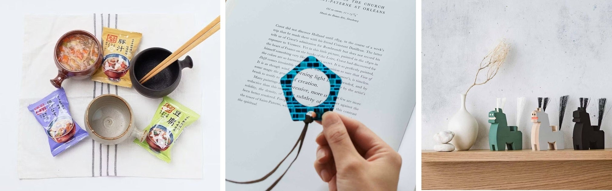 「YOU+MORE!」「猫部」「クチュリエ」など、大人の知的好奇心をくすぐる人気雑貨を展示。 さらに今回は特別展示として、フェリシモと福井のコラボレーションから既に誕生している商品に加え、これまでに他県の自治体や事業者と開発した地域産品も並びます。「福井のあの素材なら、こんな商品ができるかも?」「これがあったら面白いかも!」と、ワクワクする未来の可能性を自由に想像(妄想)していただくための空間です。会場では、みなさまの「あったらいいな」というユニークなアイデアやご意見もお待ちしております。