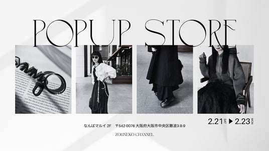 - イベント名:なんばマルイ POPUP STORE by zoutoneko- 開催日時:2026年2月21日(土)11:00~20:00、22日(日)11:00~20:00、23日(月)11:00~19:00
