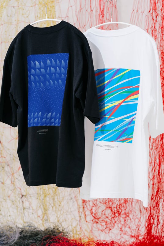 背面の鮮やかなテキスタイルが目を引くオーガニックコットンTシャツ。amuca(R)の胸ポケットなど、360度こだわりが詰まった一着です。