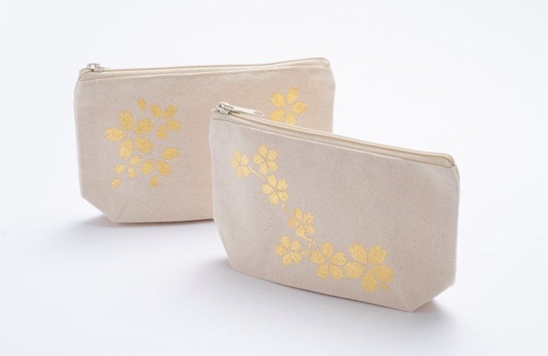内容:ナチュラルな風合いのコットンポーチに、「桜」の柄をレイアウトし、金箔加工で仕上げていただきます。