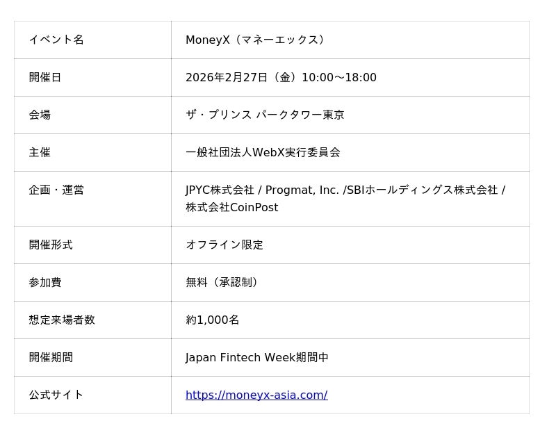 詳細:ステーブルコインの正式認可を背景に、通貨の新時代をテーマとした金融カンファレンス「MoneyX(マネーエックス)」開催決定