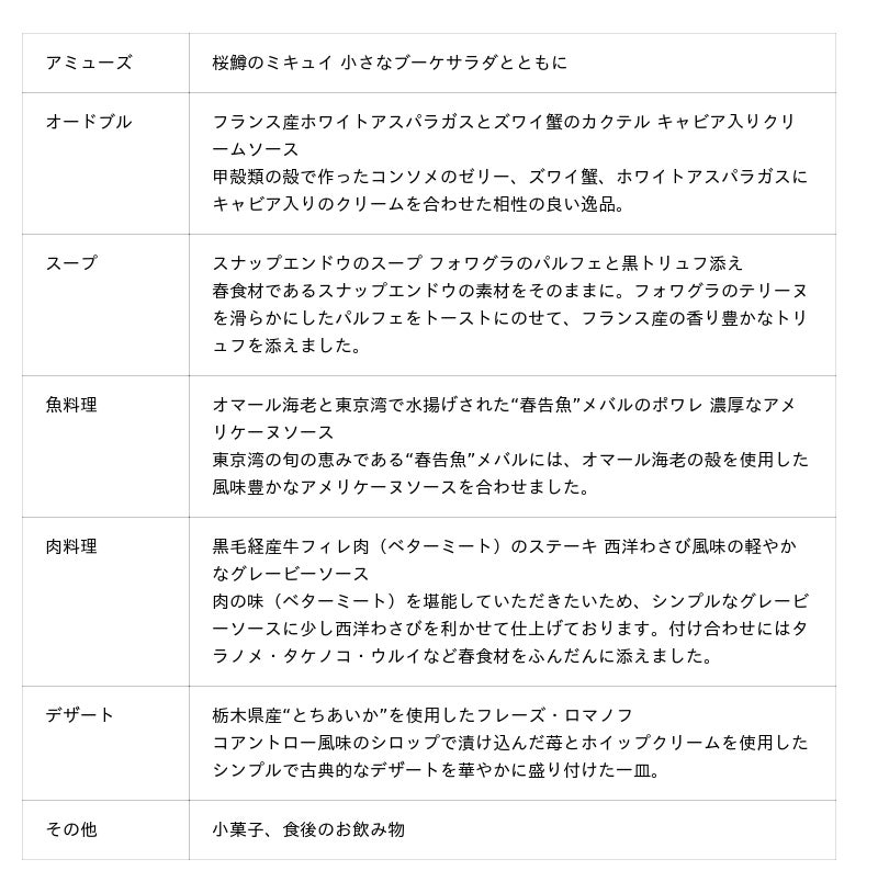 「春を彩る食材と世界三大珍味を味わえるコース」提供概要