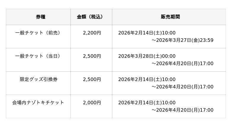 ※「限定グッズ引換券」のみでの入場はできません。別途、一般チケット(前売・当日)をご購入ください。