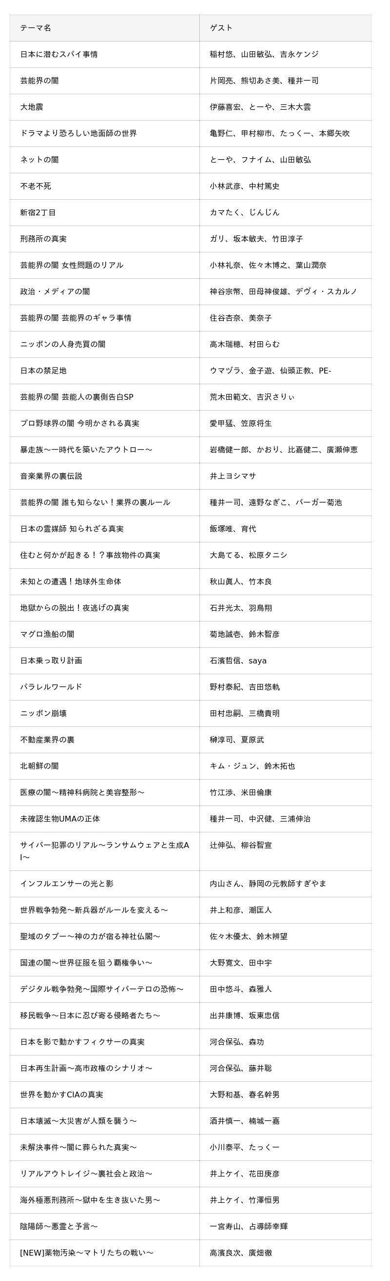 【配信中のテーマ・各回ゲスト】