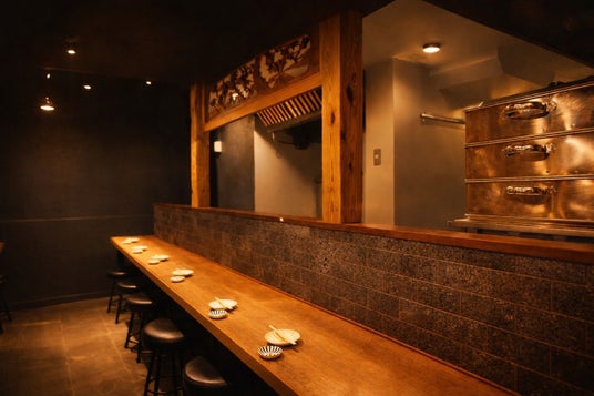 卓上コンロを囲むテーブル席に加え、落ち着いたカウンター席も完備。
