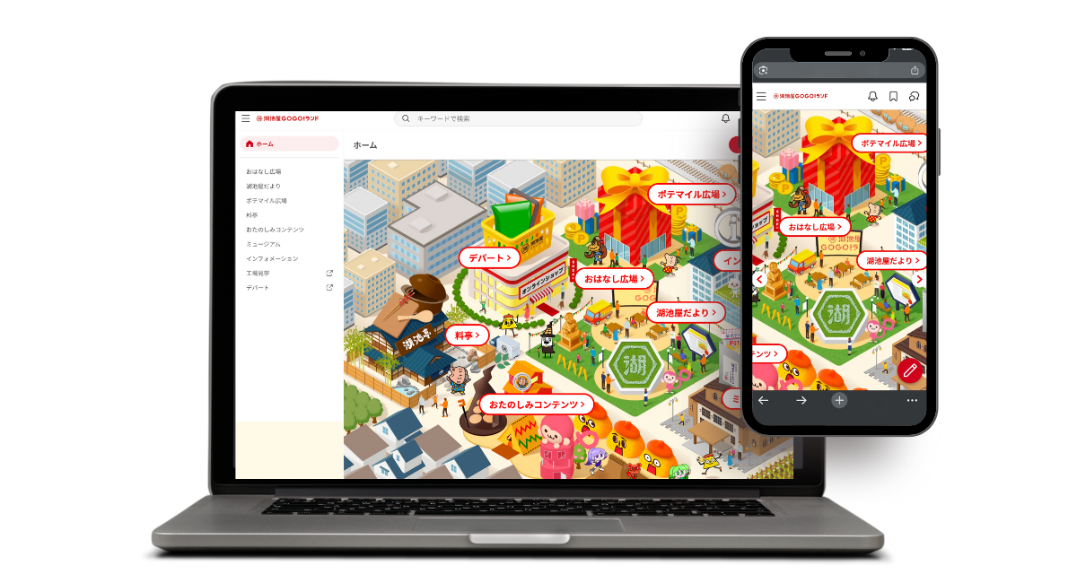 会員登録(無料)をされたお客様は、この街の「住人」として集い、街の仲間との交流や、コンテンツに参加して楽しむことができます。商品やブランドの魅力を体験いただき、湖池屋のものづくりや想いをより身近に感じていただける場を目指しています。
