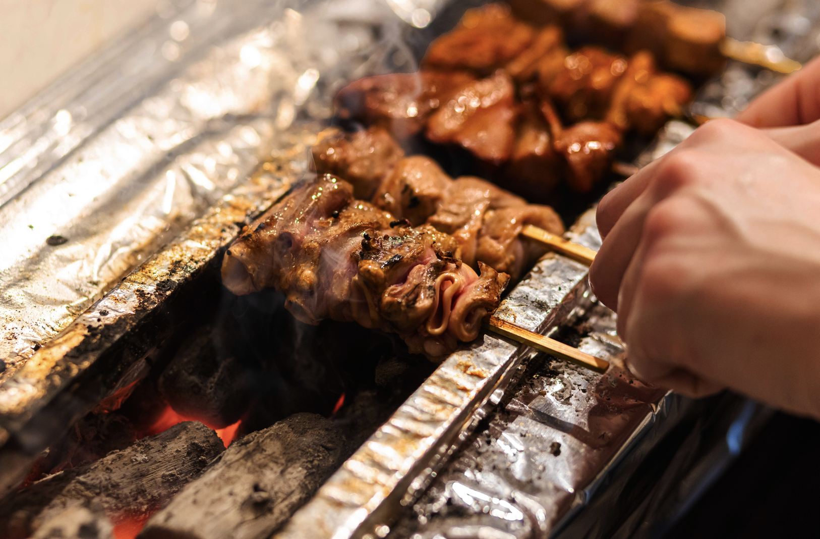 やきとん まこちゃんのタレは、創業以来“一子相伝”。毎日つぎ足し、つぎ足しで受け継ぎ、日々数百本焼き上げる肉の旨みが溶け込んでいきます。