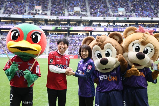 白熱の試合の合間にもダービーの火花が!広島県の横田美香知事と、岡山県の伊原木隆太知事がピッチに登場し、「チョップスティックチャレンジ」で対決しました。広島は「もみじ饅頭」、岡山は「きび団子」で挑んだこの勝負、軍配は岡山県の伊原木知事に!次回のアウェイ戦では必ず雪辱を果たしましょう!