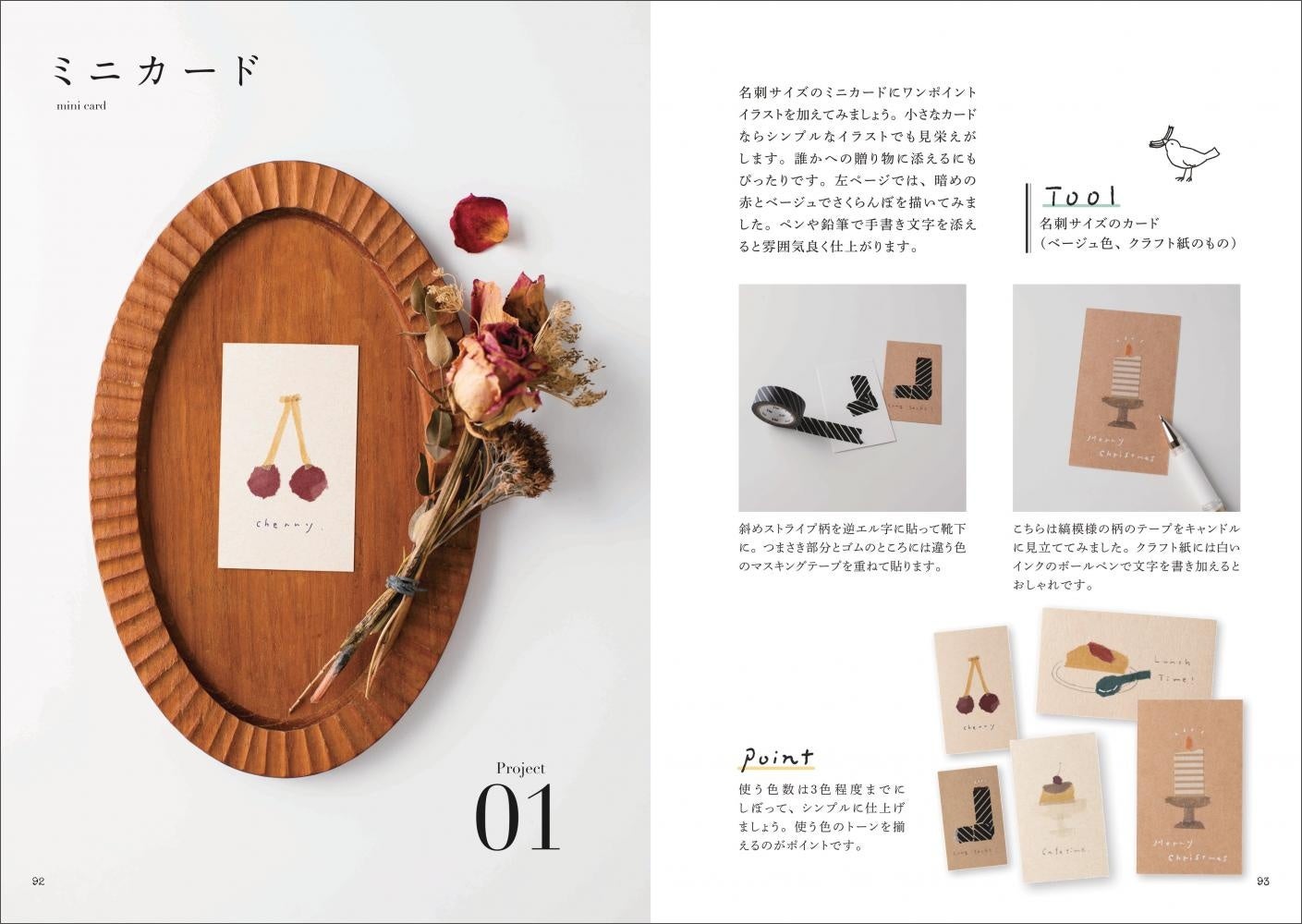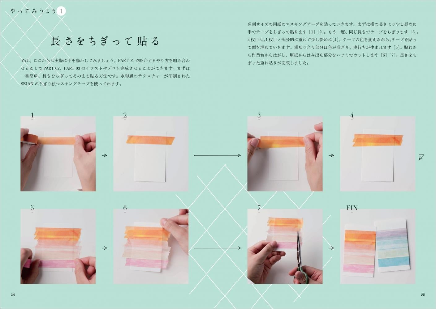 PART01では使いやすいマスキングテープの紹介や基本的なやり方を丁寧に解説。テープを重ねて貼って風景にしたり、円に沿って貼ってドーナツにしたり。いろいろなイラストを描くための基本をご紹介します。