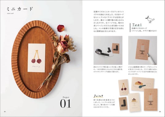 基本の貼り方から、花や食べ物、雑貨といったモチーフ別の描き方、さらには手帳やギフトを彩るアイデアまで幅広く紹介します。特典として、かわいい下絵データもダウンロードいただけます(要会員登録)。