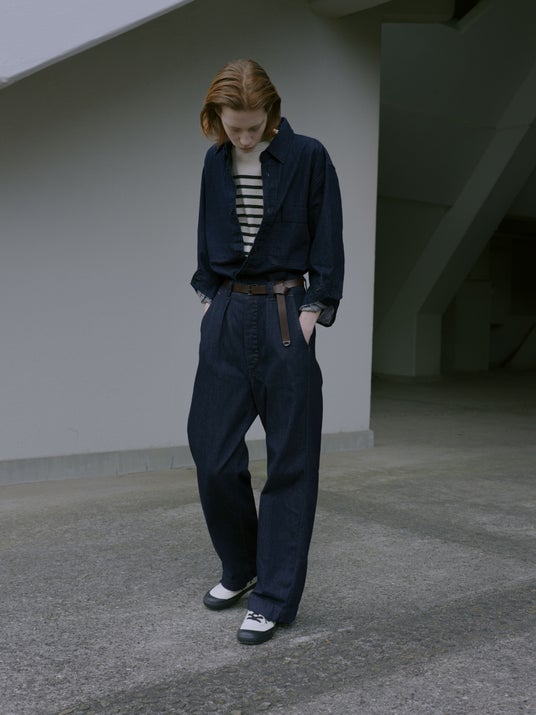今回、はじめてコレクションに加わるシャツは、デニム工場ではなかなか制作が難しいとされるところを、CANTON OVERALLSの高い技術力により工程と縫製を再構築し完成したこだわりの一枚。両者のクラフトマンシップによって、普遍性を保ちながら今の気分に合わせてアップデートし続け、日常の中で着る人それぞれの個性を引き立てます。