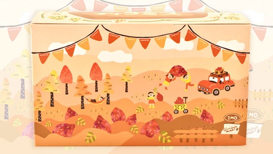 自分へのご褒美にはもちろん、手土産や差し入れに選ばれる理由のひとつが、箱を開ける前から気分が上がる“かわいいパッケージ”。お芋の収穫の様子を感じられるデザインで、開封のワクワクを引き立てます。