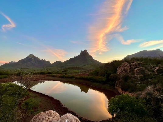 ソノラ州キリエゴの山奥にある蒸留所からの風景。バカノラの生産の他、酪農業も行われている。