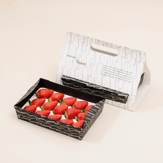 【店舗限定】白十字農園で栽培した完熟の3Lサイズの苺。品種は、"スターナイト" 又は "おいCベリー"のどちらかになります。HAKUJUJI Noen 苺 ¥3,000(税込)