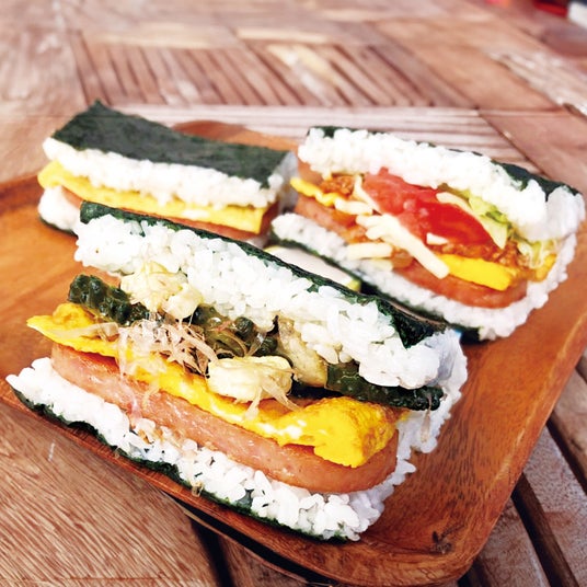 沖縄を代表する食材を使ったおにポー(ポークたまごおにぎり)です。