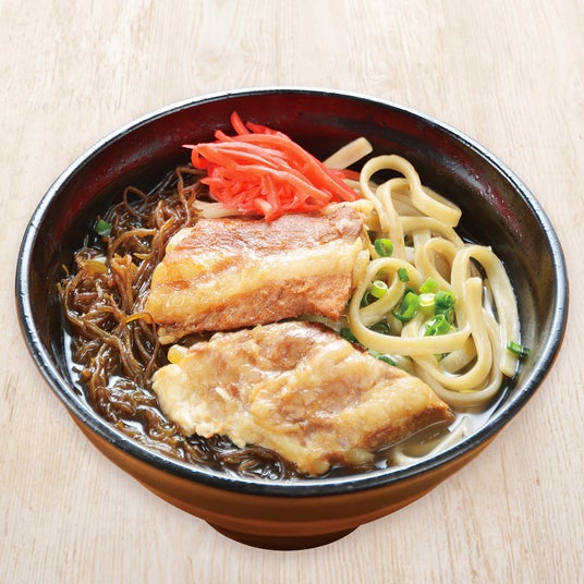 自家製麺のもずく生麺に、軟骨ソーキの相性が抜群の一杯。