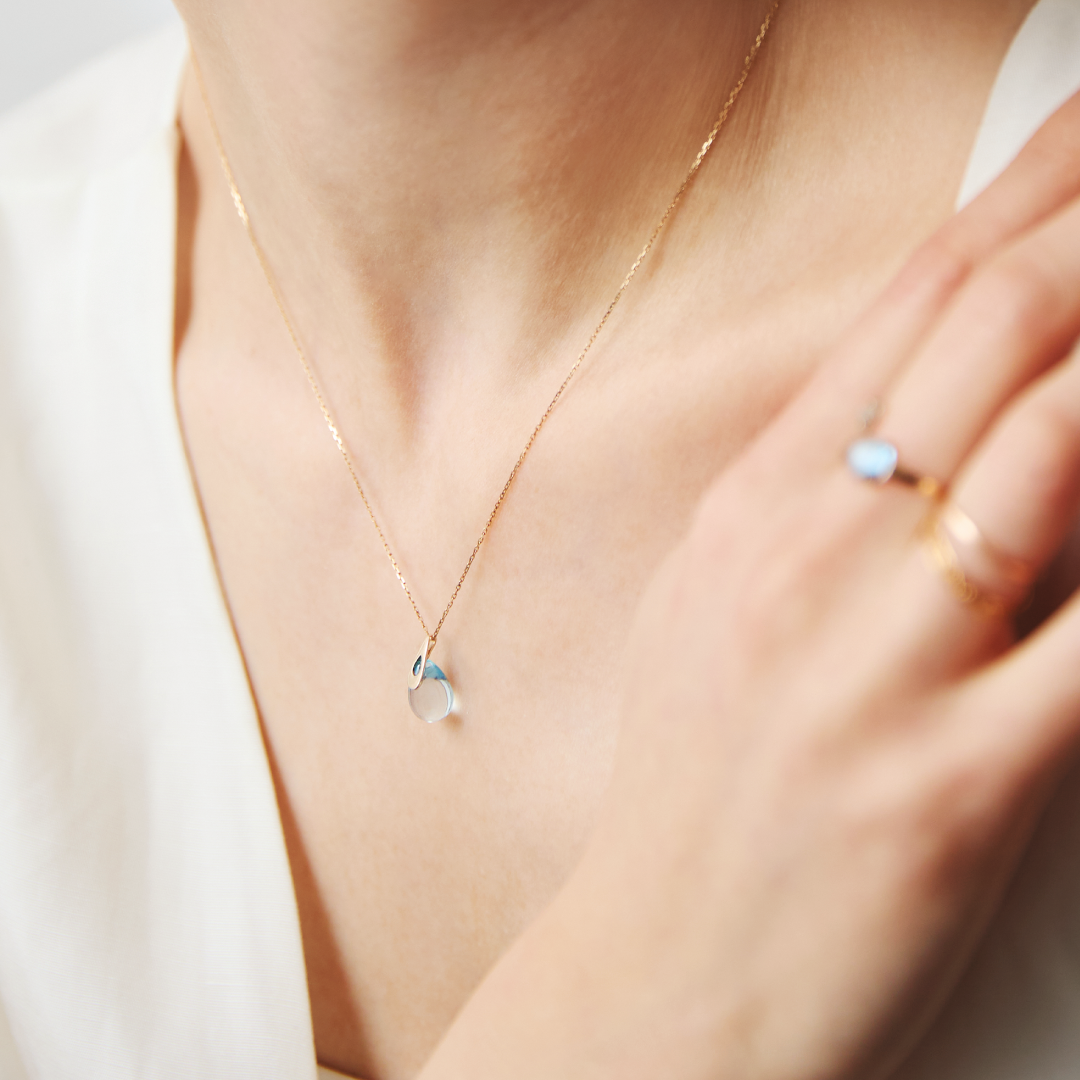 胸元で優しく煌めく天然石は、新しい日々へ向かう時、背中をそっと押してくれるように、寄り添います。