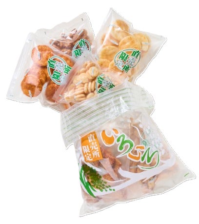 毎日工場で作られるできたてのあられ・おせんべいや、ここでしか買えない限定商品、お得な商品が並ぶ販売エリアです。●工場直売所限定商品「お楽しみ袋」