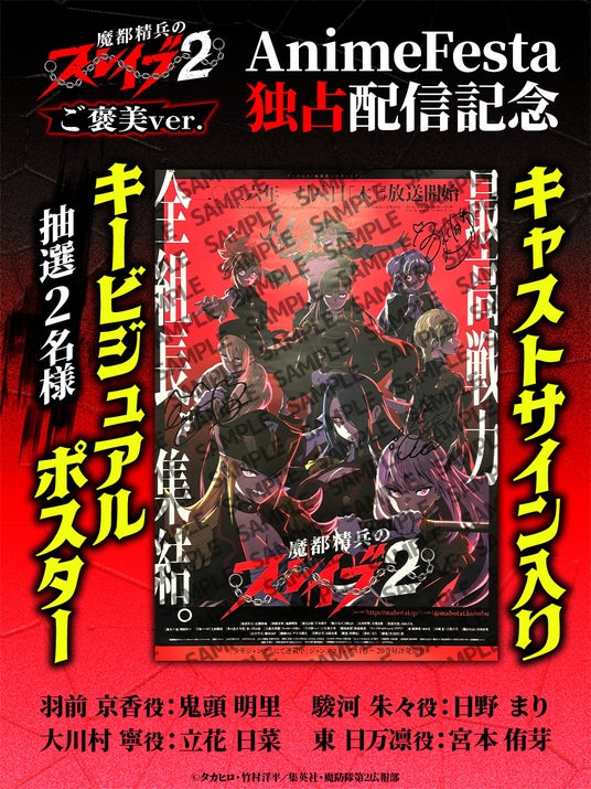 【AnimeFestaで独占配信中!】『魔都精兵のスレイブ2 《ご褒美Ver.》』キャストサイン入りポスターが当たるプレゼントキャンペーンスタート!