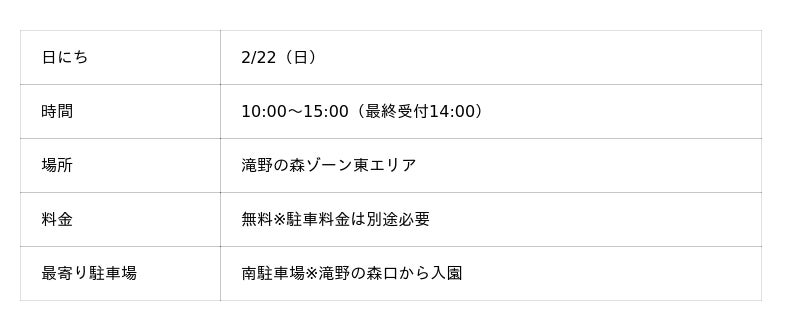 滝野すずらん丘陵公園(札幌市南区滝野247)では、2/22(日)に滝野の森ゾーン、冬の一大イベント「たきの森フェス~2026winter~」を開催いたします。