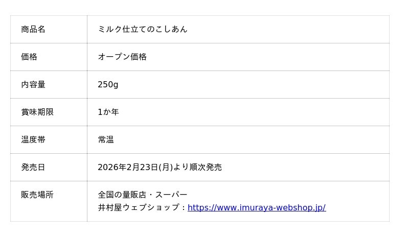 井村屋株式会社(本社:三重県津市高茶屋七丁目1番1号、社長:岩本 康)は、「カップ入りあん」シリーズの新商品として『ミルク仕立てのこしあん』を2026年2月23日(月)より発売します。