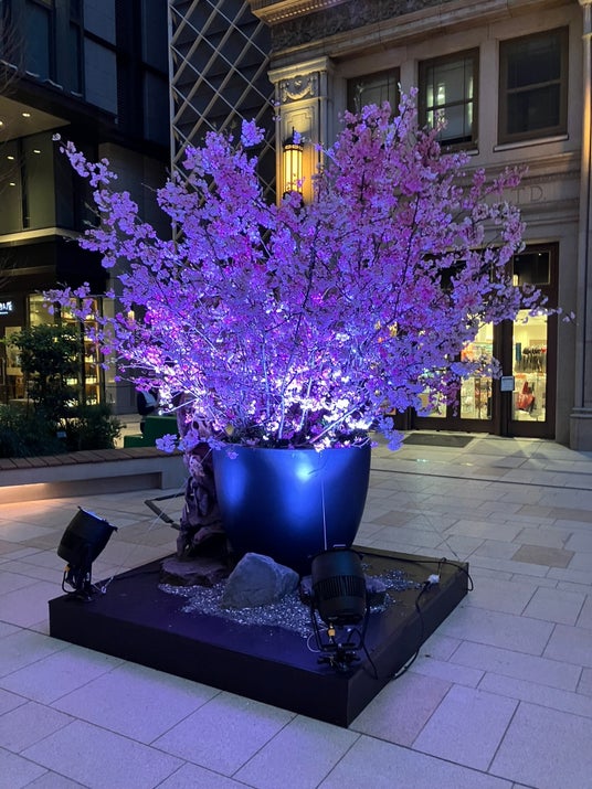 京橋エドグランでは、桜が織りなす春色のオブジェで皆さまをお出迎えします。夜間はライトアップにより、昼間と異なる雰囲気を演出します。また、館内では、定期的にライブ等のイベントも実施します。ぜひこの機会にお立ち寄りいただき、春の訪れをお楽しみください。