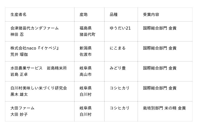 2026年度の「世界最高米(R)」原料玄米が決定!今年度は福島県、新潟県、岐阜県から5品を認定