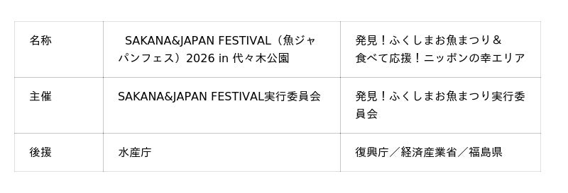 累計来場者270万人 日本最大級の魚介グルメフェスSAKANA&JAPAN FESTIVAL 魚ジャパンフェス2026 in 代々木公園