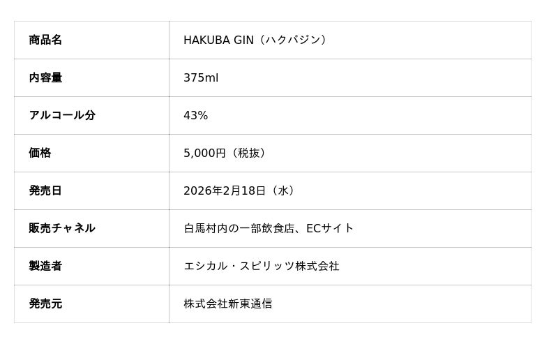 株式会社新東通信(本社:東京都中央区/愛知県名古屋市、代表取締役社長:谷 鉃也)は、長野県白馬村に自生する植物をボタニカルとして活用したクラフトジン「HAKUBA GIN」を、2026年2月18日(水)より販売開始します。