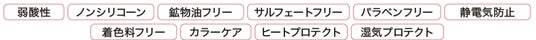 ノンシリコーンはシャンプーのみ、パラベンフリー、静電気防止、湿気プロテクトはシャンプー・ヘアコンディショナー併用による。