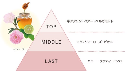 7種の天然香料配合。マグノリアやピオニーで華やかなフローラルブーケを表現した上品な香りです。アップサイクル原料※4を使用しています。