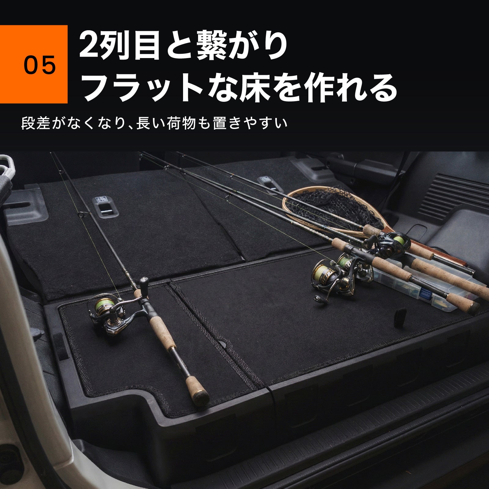 約40L収納の専用設計ボックスで、簡単取付・レイアウト変更にも対応。ラゲッジをすっきり整理し、積みやすいフラットな床面を実現。ノマドのラゲッジ空間を、もっと使いやすくアップデート!