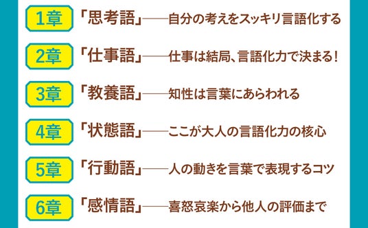 本書には、今どきの大人にとって、「言語化」のために必要な言葉を満載しました。論理的に考えるため、あるいは考えたこと、感じたことを人にうまく伝えるため、ぜひお役立てください。