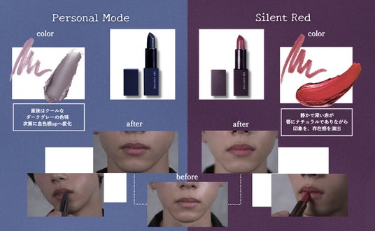 「スタイリッシュでモードな印象からphで個人の唇に馴染み血色up〈パーソナルモード〉」「深く静かな赤がナチュラルに、かつ印象的な唇を演出〈サイレントレッド〉」の2種類のリップスティックが新発売!