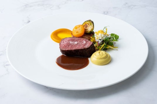 厳選した国産牛ロース肉を低温でローストし、やわらかな食感と豊かな旨味を引き出しました。コク深く仕立てた赤ワインソースとの調和をお楽しみください。