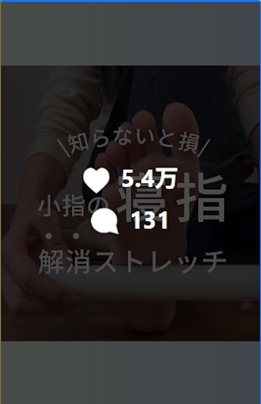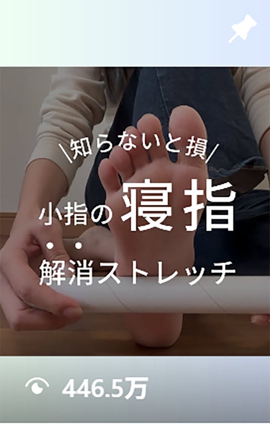 - 2025年4月4日投稿「知らないと損 小指の寝指解消ストレッチ」→446.5万再生/5.4万いいね
