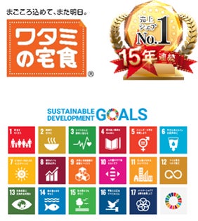 「ワタミの宅食」は、日替わりのお食事と “まごころ” をお届けすることで“社会を支えるインフラ” となることを目指し、事業を展開しています。お弁当・お惣菜は、お客さまと同じ地域に住む“まごころスタッフ”がお届けしています。毎日約23万食以上のお弁当・お惣菜をお届けしており、病者・高齢者食宅配市場「売上シェア15年連続 No.1」(2010年~2024年)※を達成しています。2020年3月には、業界として初めて、自社弁当容器を回収し、新たな容器としてリサイクルする取り組みを全国に展開するなど、SDGsの目標達成にも貢献しています。