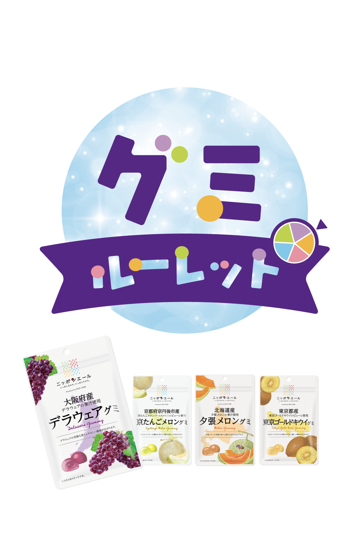 ルーレットで出た都道府県のご当地グミ・ニッポンエールグミがもらえる!さらに大当たりが出たら「47都道府県コンプリートBOXグミ」をプレゼント!