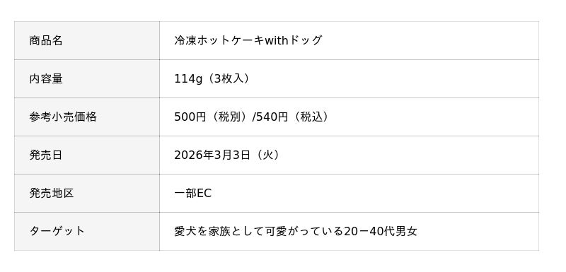 - 森永ホットケーキの味わいをイメージしたひとも愛犬も食べることができる冷凍ホットケーキ