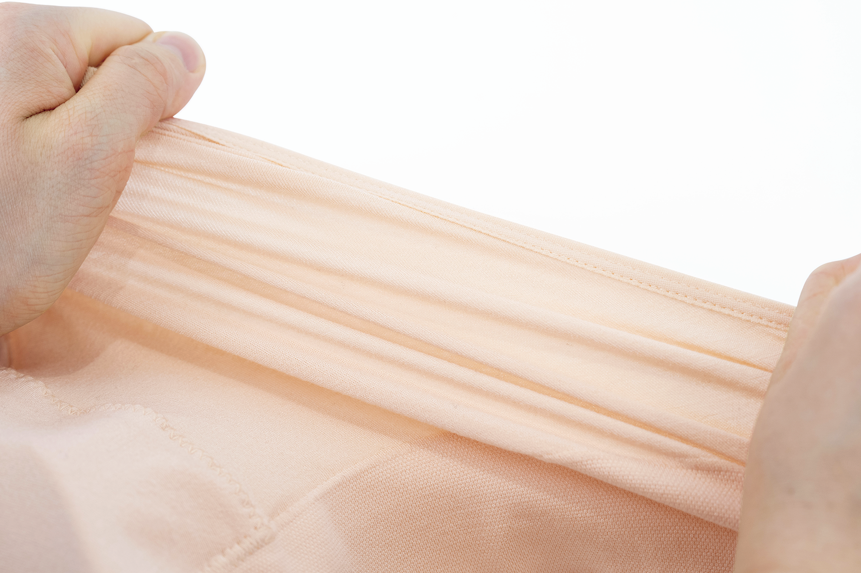 編み方を工夫することで、全方向にストレッチするように生地を編み上げました。伸縮性も高く、身体の動きにフィットし、ピタッとやわらかく包みます。