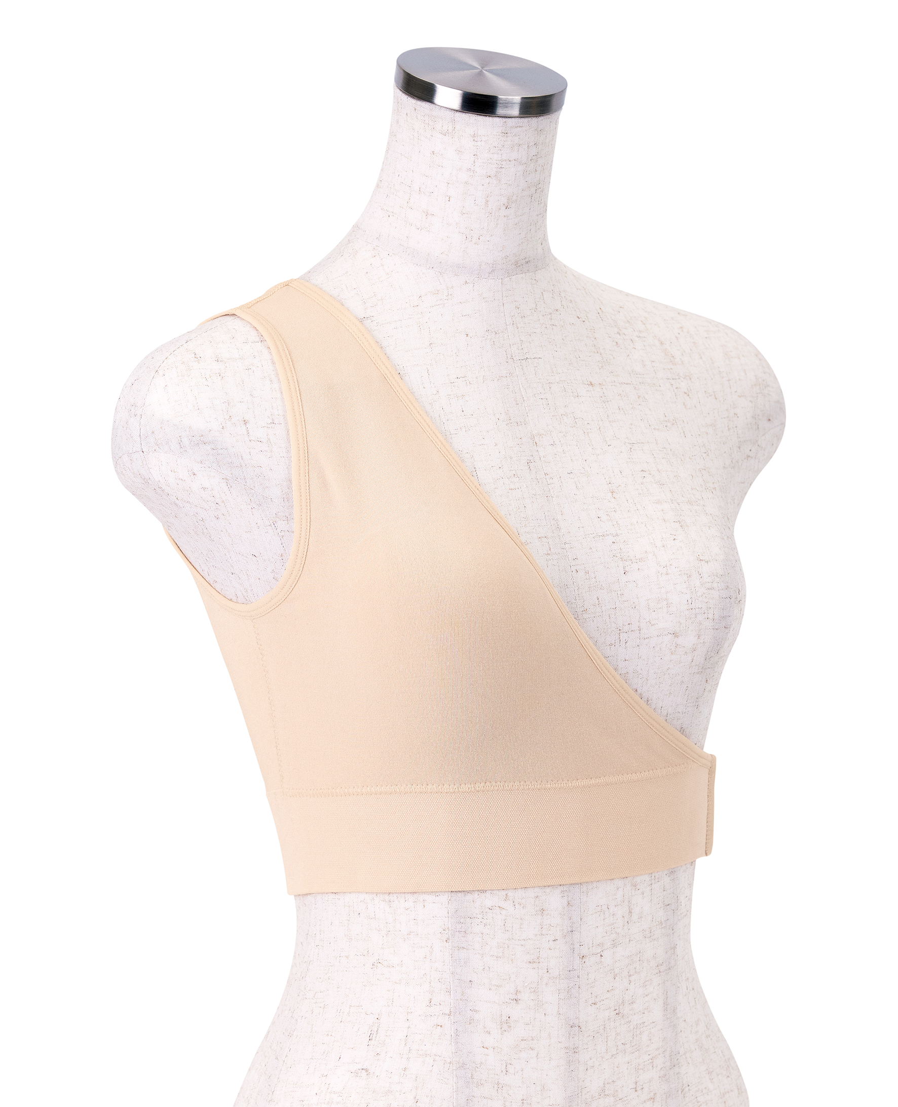 アンダーは、通常のブラジャーよりもリブを広めに設計し、横になって過ごす時間が長い患者さまも、日常の何気ない動きでもずり上がりにくいように仕立てました。