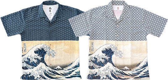 今回のコレクションの中で特に目を引く「北斎アロハ」シリーズのうちの2種類は、京丹後ちりめんの製造過程で発生したキズのある反物を再活用し、アロハシャツへとリメイクした特別仕様。さらに、墨田区で生まれた葛飾北斎の代表作「神奈川沖浪裏」をプリントした唯一無二のアイテムです。そのうち、「すみだ北斎美術館」の版画データを使用して製作したモデルは、墨田区のブランド認証である「すみだモダン」を受賞しており、品質とデザイン性が高く評価されています。