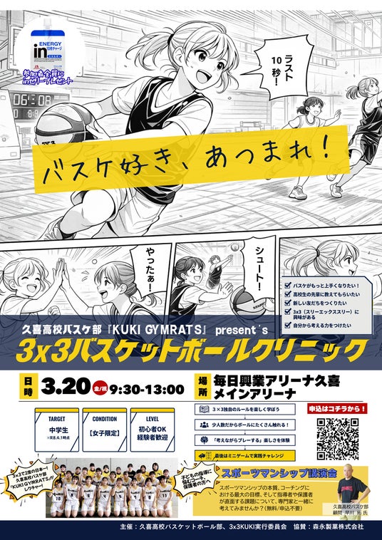 3x3バスケットボールクリニック日時:令和8年3月20日(金・祝)9時30分-12時